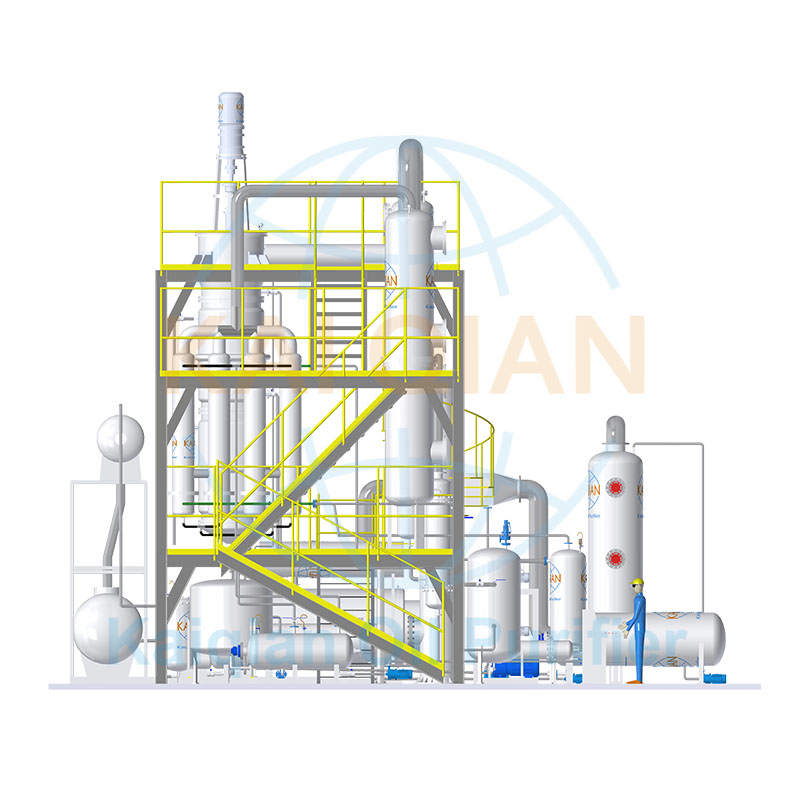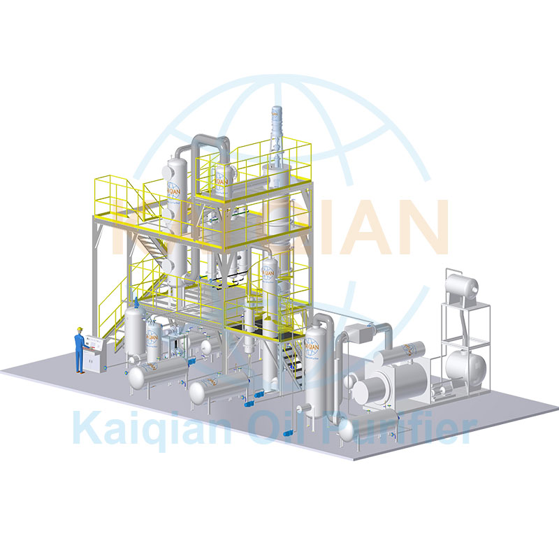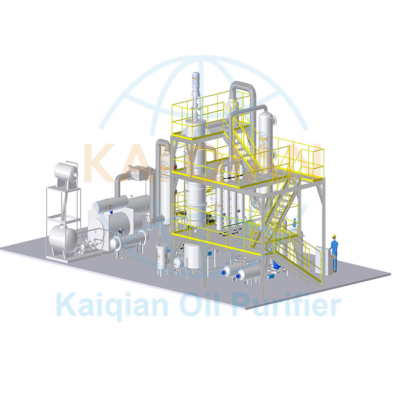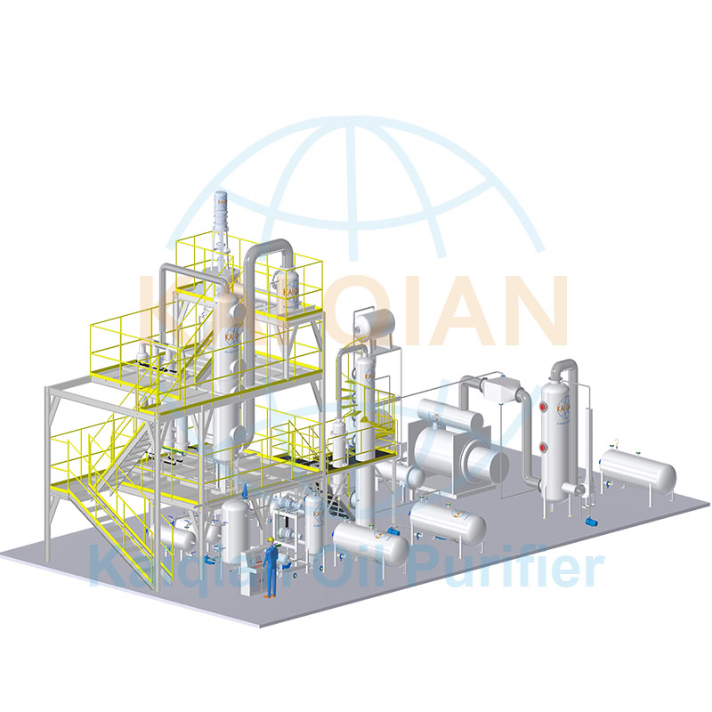 2.1.輪胎油塑料油精餾設備裝置適用于裂解后的輪胎油、塑料毛油,通過減壓精餾提純,解決了裂解設備不能精餾毛油黑油難
