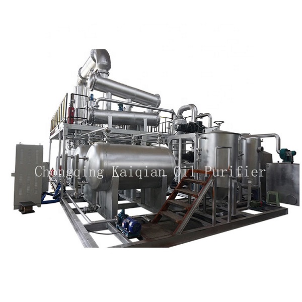 廢油分子蒸餾是一種新型的石油化工分離技術(shù),它是在高真空技術(shù)條件下遠(yuǎn)低于常壓沸點(diǎn)的分離過程。采用多級(jí)分子蒸餾技術(shù),研究礦物質(zhì)廢油獲得不同溫度及真空度條件下脫水、采集產(chǎn)品餾分,為高真空條件分離重質(zhì)油提供了相關(guān)工藝參數(shù),分子蒸餾工藝綜合應(yīng)用廢油分子蒸餾工藝,通過高真空使沸點(diǎn)大幅度降低,從而使廢潤(rùn)滑油中雜質(zhì)脫除時(shí)不發(fā)生分子斷鏈和降解,既保證廢油提煉潤(rùn)滑油產(chǎn)品黏度及閃點(diǎn)等指標(biāo)合格,又確保廢油生潤(rùn)滑油顏色淺,質(zhì)量可達(dá)到或超過原潤(rùn)滑油質(zhì)量標(biāo)準(zhǔn)。